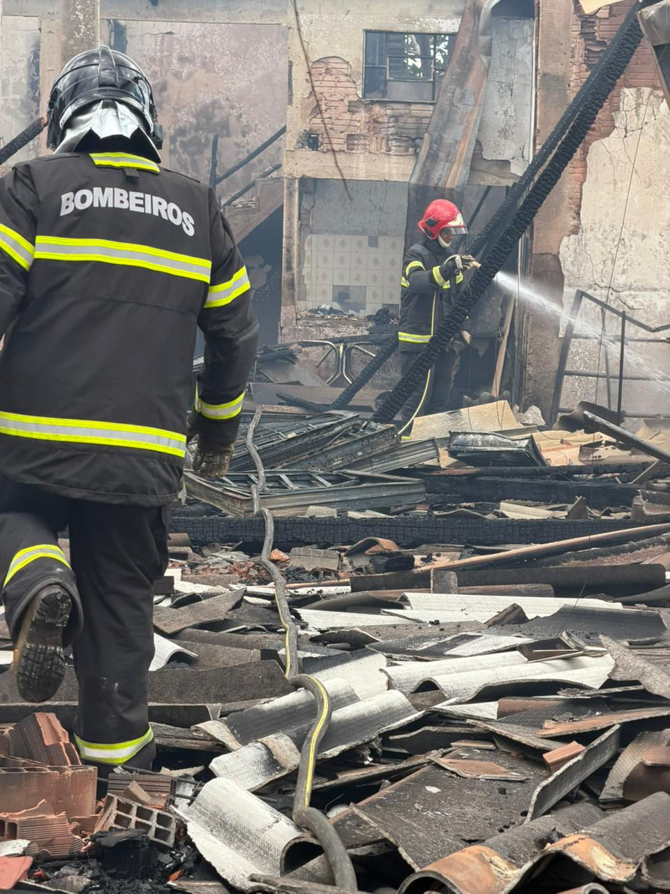 O incêndio causou o colapso total das estruturas e queima total dos materiais internos, sem nenhum tipo de vitima.